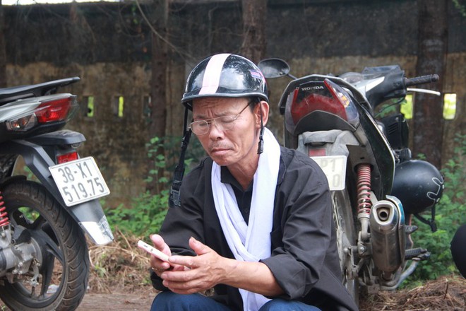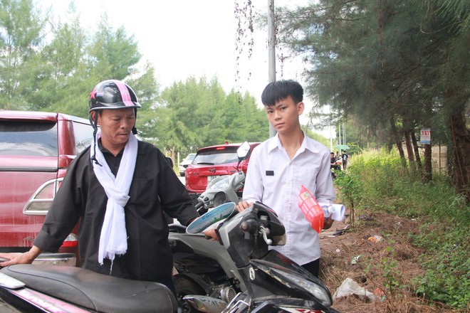 Sáng 27/6, hình ảnh người đàn ông mặc áo đen, choàng lên vai khăn tang màu trắng chở con trai đến Trường THPT Thành Sen (TP Hà Tĩnh, tỉnh Hà Tĩnh) để bắt đầu kỳ thi tốt nghiệp khiến nhiều người xúc động.