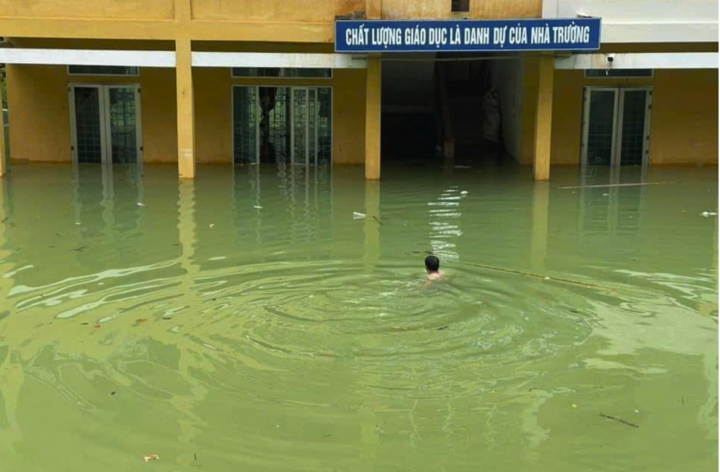 "Bức ảnh do con thầy Việt chụp ngày 24/8, thời điểm đó nước dâng ngập trường, mực nước cao khoảng 3m nên không thể lội vào kiểm tra. Thầy Việt do quá sốt ruột nên quyết định bơi vào trường để kiểm tra, xem xét tình hình các vật dụng, trang thiết bị" , ông Đông nói và cho biết không chỉ thầy Việt mà rất nhiều thầy cô khác đang rất lo lắng vì đã nhiều ngày, nước vẫn chưa rút hết trong khi ngày khai giảng năm học mới cận kề.