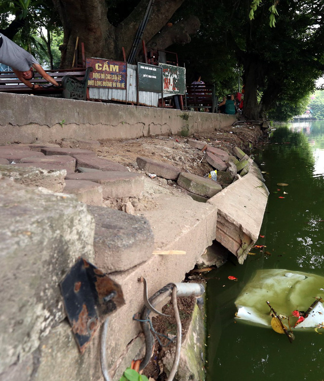 Tuy nhiên, ghi nhận của Báo Gia đình & Xã hội trước đó cho thấy, khu vực bờ Hồ Gươm, đoạn ven đường Lý Thái Tổ, nhà hàng Thủy Tạ xuất hiện nhiều đoạn xuống cấp, bờ kè bị đứt gãy, gạch đá nằm ngổn ngang, mảng bê tông lớn sụt trôi xuống hồ.