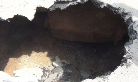 07/03/2015 00:48"Hố tử thần" khổng lồ giữa tỉnh lộ