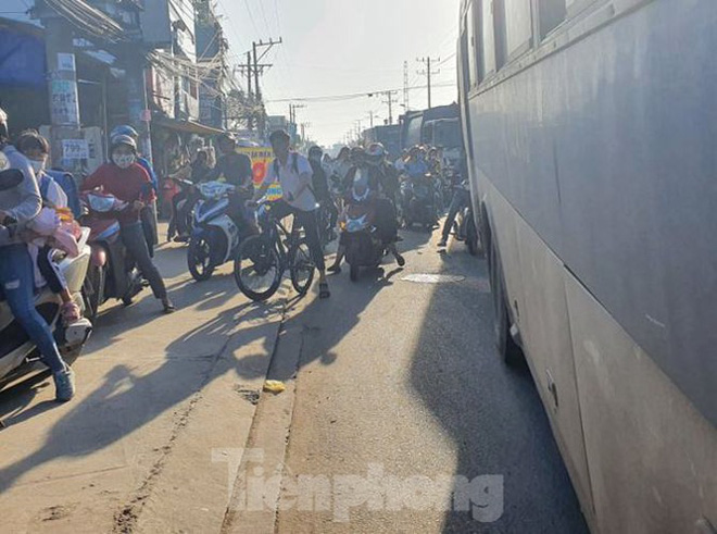 Người dân địa phương hiếu kỳ đã chạy đến chứng kiến, đường ùn tắc kéo dài.