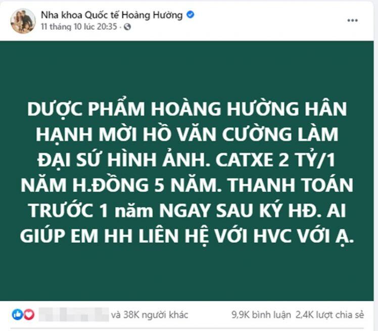 Năm 2021, trong bối cảnh ồn ào giữa ca sĩ Hồ Văn Cường và trợ lý của cố nghệ sĩ Phi Nhung, fanpage Nha khoa Quốc tế Hoàng Hường đăng bài mời Hồ Văn Cường làm đại sứ hình ảnh với cát-xê 2 tỷ đồng/năm, hợp đồng 5 năm.