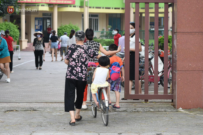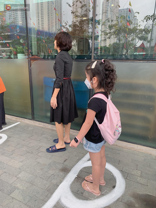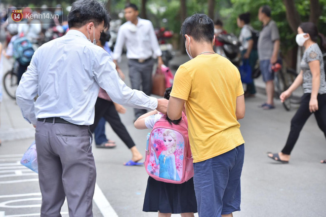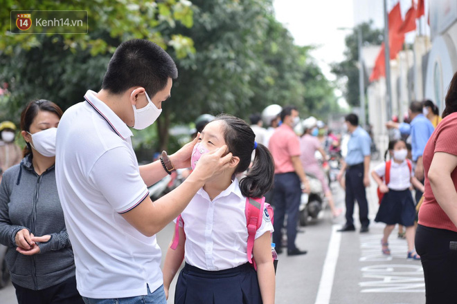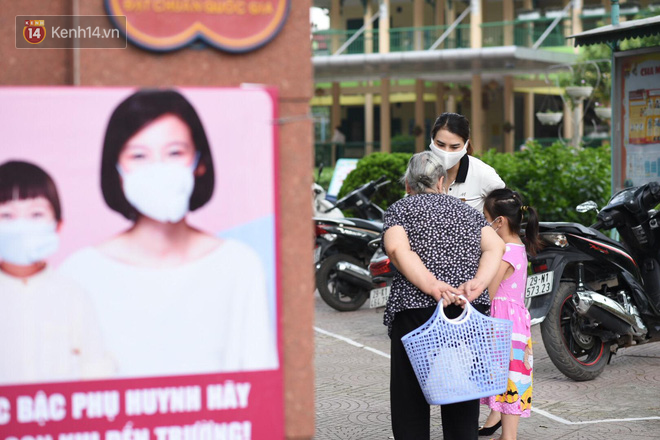 Ghi nhận ở điểm trường Mầm non Hoa Sen (quận Long Biên), ngay từ sáng sớm đã có rất đông phụ huynh đưa con đi học trở lại. Từ 7 giờ sáng, các thầy cô luôn túc trực ở cổng trường đón học sinh và yêu cầu phụ huynh khi vào trường phải bắt buộc đeo khẩu trang. Vì ngày đầu đi học còn bỡ ngỡ, nhiều em tỏ ra hơi lo lắng, bám sát lấy bố mẹ hay thậm chí òa khóc không chịu vào trường. Các giáo viên đã nhanh chóng làm nhiệm vụ hỗ trợ đưa các em về đúng vị trí lớp học.