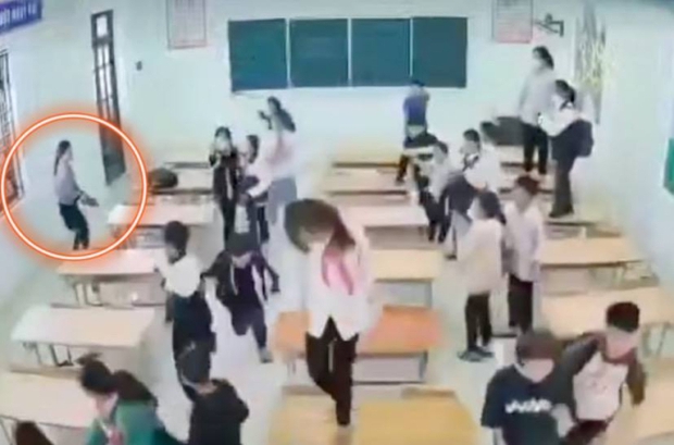Không lâu sau đó, cộng đồng mạng lại truyền tay nhau thêm một đoạn clip cảnh học sinh trêu đùa bỡn cợt cô giáo trong lớp học. Vì không giữ được bình tĩnh nên cô giáo cầm dép đuổi đánh học sinh trước tiếng reo hò đầy phản cảm của đám đông xung quanh.