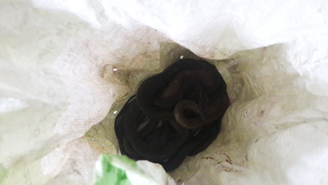 Chủ nhà gọi điện báo cho Công an phường đến kiểm tra thì thấy trong bao tải có nhiều con rắn còn sống.