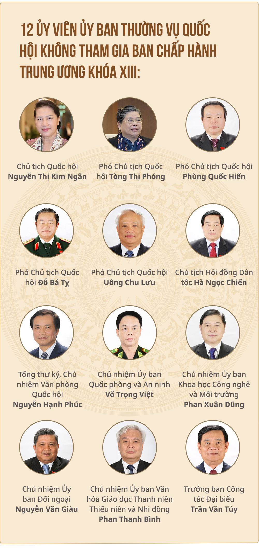 Theo kết quả Đại hội, Chủ tịch Quốc hội Nguyễn Thị Kim Ngân cùng nhiều lãnh đạo cấp cao khác của nhà nước không tái cử, không tham gia Bộ Chính trị, Ban Chấp hành Trung ương. Như vậy, các vị này sẽ không giữ các chức vụ lãnh đạo trong bộ máy nhà nước khoá tới.