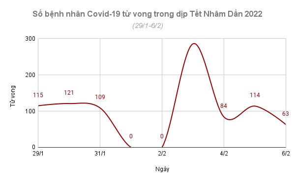 Tổng số ca tử vong trong giai đoạn 29/1-6/2 là 892 người. Riêng ngày 6/2 có 63 ca tử vong, thấp nhất trong vài tháng qua.