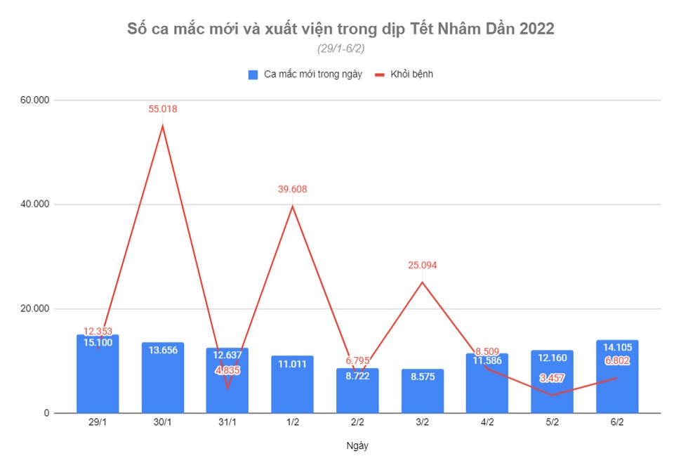 Trong dịp nghỉ lễ, 29/1 là ngày có thêm nhiều bệnh nhân mới nhất với 15.100 trường hợp (gồm 10.187 ca cộng đồng, 4.913 ca trong khu cách ly/phong tỏa).