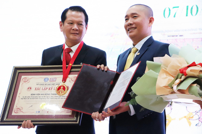 Ngoài ra, tổ chức Kỷ lục Việt Nam cũng trao danh hiệu Kỷ lục cho BV Nhi đồng Thành phố cùng huy hiệu cá nhân cho 3 bác sĩ tham gia trực tiếp ca mổ, bao gồm: TS.BS Trương Quang Định, Giám đốc Bệnh viện Nhi đồng Thành phố. BSCKII Phan Văn Tiếp, khoa Chấn thương - Chỉnh hình, Bệnh viện Đa khoa Xuyên Á và BCKII Tạ Thúy Hằng, Trưởng khoa Phẫu thuật - Gây mê hồi sức, Bệnh viện Nhi đồng Thành phố.