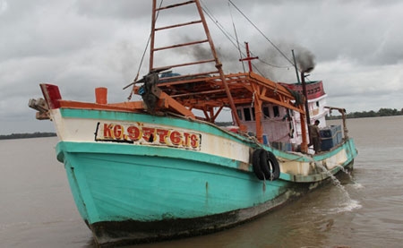 Một trong 6 tàu cá bị nhóm người trang bị vũ khí tấn công. Ảnh: Cửu Long. |