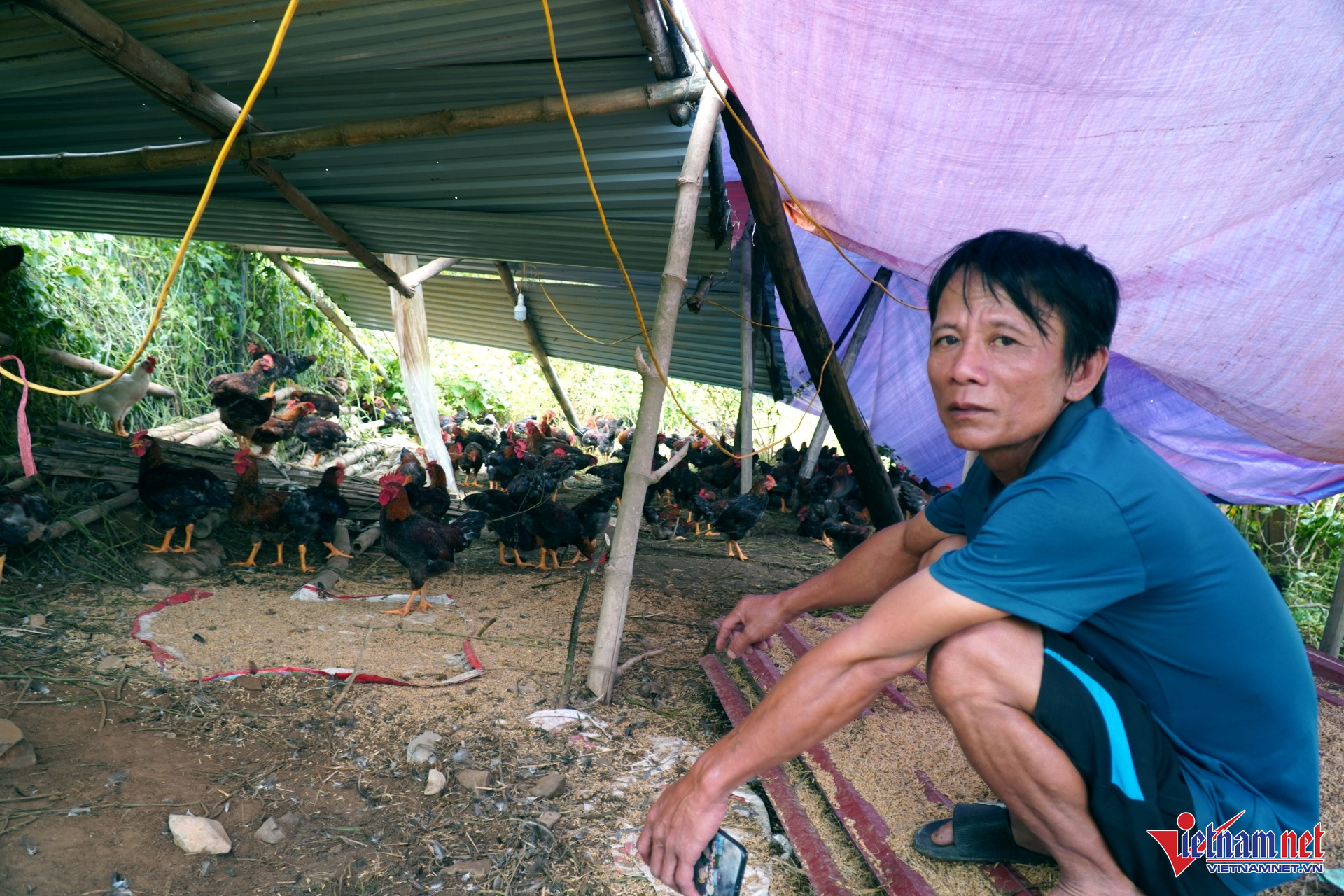 Chiều qua, khi thấy nước dâng bất thường, anh đã nhanh chóng kê đồ đạc lên cao và đưa đàn lợn (hơn 30 con) lên bờ đê để làm lán chăn nuôi tạm. Do không kịp di chuyển, nhà anh cũng bị chết hơn 30 con gà, mỗi con nặng hơn 2kg.
