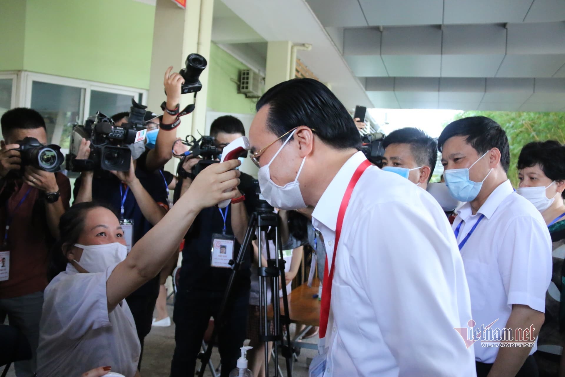 Tại điểm thi trường THPT Lương Thế Vinh (Hà Nội), tất cả những thí sinh được đo nhiệt độ trán. Những thí sinh trên 37 độ C sẽ chưa được vào phòng thi.