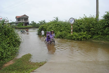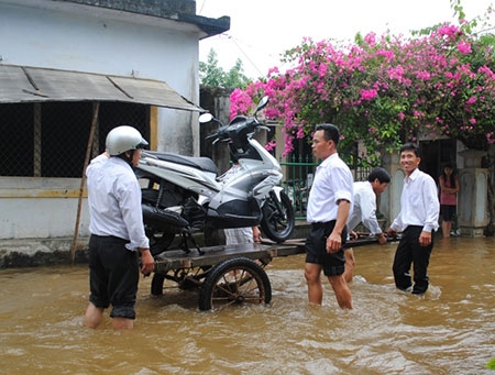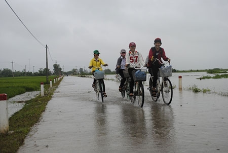 Người dân phải vội vã đón con em lội lụt về nhà |