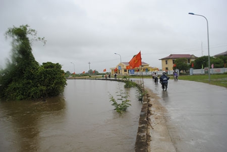 Ngay trước UBND xã Quảng An (huyện Quảng Điền) nước lũ chuẩn bị tràn qua bờ đập |