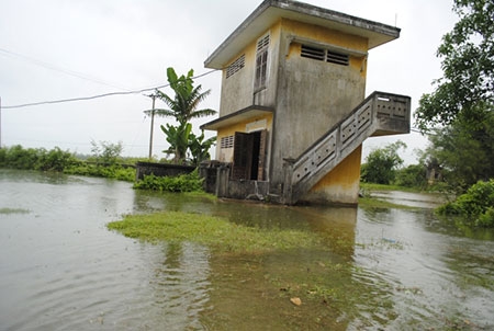 Trạm bơm thủy lợi đang bị lũ dân cao |