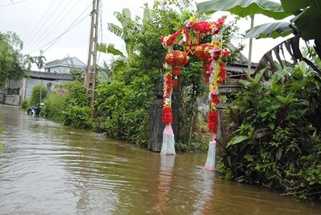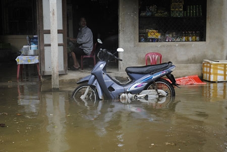 Nhiều nhà dân nước đã ngập đến nền nhà |