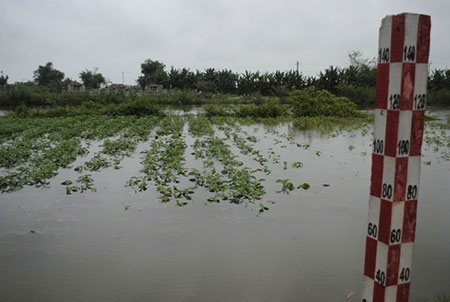 Đến 13h chiều, nhiều cánh đồng hoa màu đã ngập sâu trong nước |