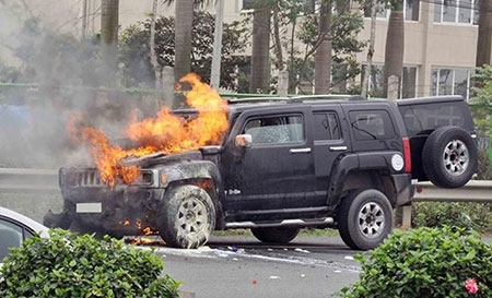 Sáng 22/2 (mùng 4 Tết), xế hộp hiệu Hummer H3 đang lưu thông trên cao tốc Láng - Hòa Lạc (hướng từ trung tâm Hà Nội đi Sơn Tây), bất ngờ bùng cháy. Theo một số người biết việc, lửa xuất phát ở phần đầu xe.