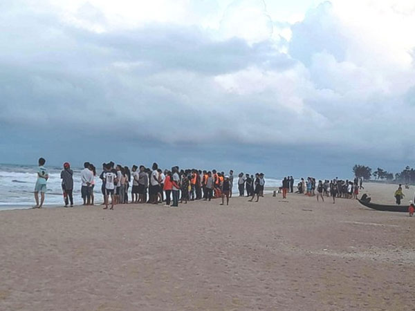 Tại đây, có nhóm sinh viên đi dọc bờ biển, trong đó một số xuống tắm đoạn gần bờ nhưng không may gặp sóng lớn nên 2 nam sinh bị sóng cuốn ra ngoài.