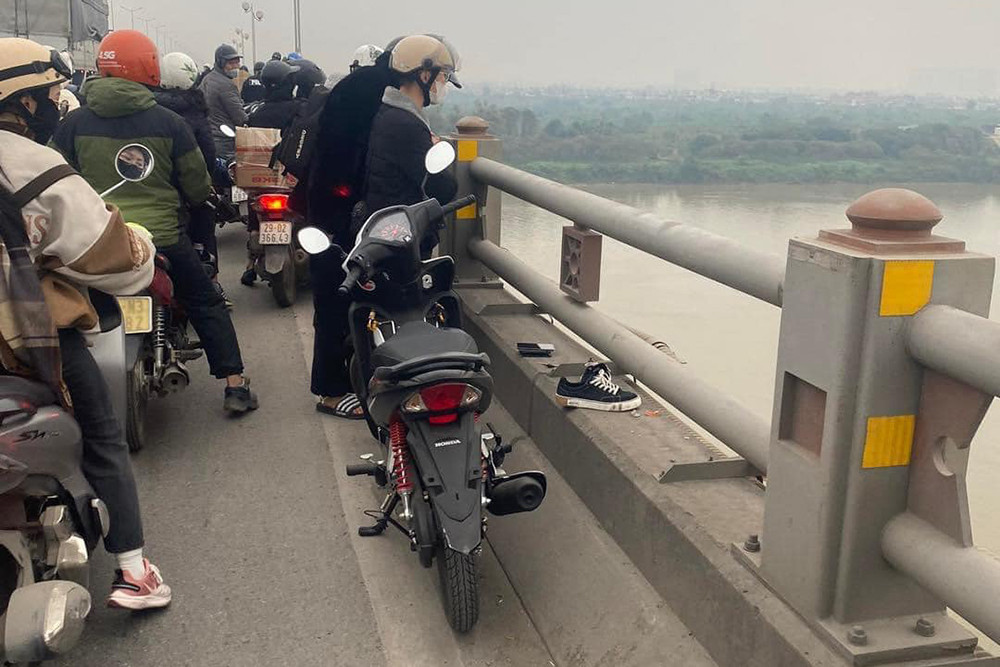 Tại hiện trường, trên mặt cầu Thanh Trì (hướng từ Lĩnh Nam sang Gia Lâm) có một xe máy không biển kiểm soát kèm theo 1 đôi giầy, ví tiền và điện thoại nghi của người nhảy cầu.