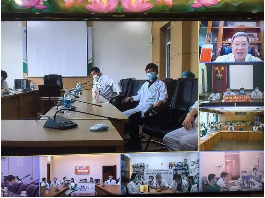 Chiều 7/4, tại Trung tâm quản lý, điều hành trực tuyến hỗ trợ chuyên môn, chẩn đoán, điều trị Covid-19 đã diễn ra cuộc hội chẩn giữa các thành viên thuộc Tiểu ban điều trị, Hội đồng chuyên môn các bệnh truyền nhiễm với các chuyên gia đầu ngành về hồi sức, truyền nhiễm, cấp cứu, hô hấp về công tác điều trị bệnh nhân Covid-19 nặng.