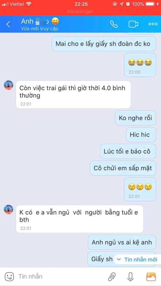 Dòng tin nhắn của nữ sinh gửi đi chỉ nhận phản hồi lại khá "gợi tình" như đòi gặp mặt, ngủ cùng và muốn nữ sinh đi chơi cùng, nếu nữ sinh đồng ý thì mới đáp ứng nguyện vọng chuyển sinh hoạt Đoàn.
