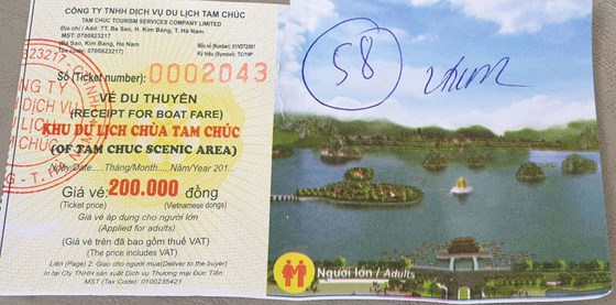 Toàn bộ hóa đơn đi xe điện, biên lai bãi đỗ xe, biên lai hướng dẫn viên sau khi ra khỏi chùa sẽ được các bộ phận thu lại, mặc dù trong vé đã ghi rõ “Liên 3 giao cho người mua”. Chúng tôi thắc mắc, một nhân viên giải thích: “Trước đây cũng giao cho người sử dụng dịch vụ nhưng sau đó chúng em được chỉ đạo thu lại hết nên phải thực hiện thôi ạ”. Đơn vị vận hành dịch vụ ở đây là Công ty TNHH Dịch vụ Tam Chúc, một nhánh của doanh nghiệp Xuân Trường có trụ sở tại Ninh Bình.