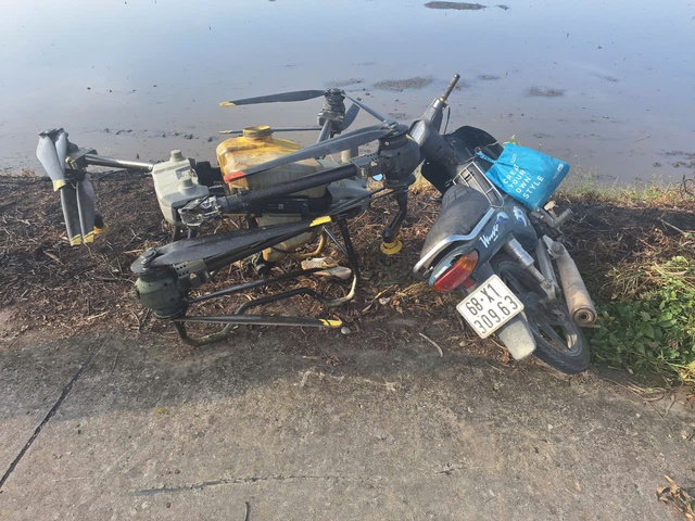Theo ông Châu Thiệu Vân, Chủ tịch xã Mỹ Hiệp Sơn, vụ việc hy hữu xảy ra vào sáng ngày 20/11. Thời điểm này, ông B.V.T. (SN 1975; ngụ xã Mỹ Hiệp Sơn, huyện Hòn Đất) điều khiển xe máy trên đoạn đường kênh 15 (thuộc ấp Hiệp Trung, xã Mỹ Hiệp Sơn) thì bất ngờ va chạm với drone do ông M.V.L. (SN 1995; ngụ cùng xã) đang điều khiển phun thuốc ruộng lúa.