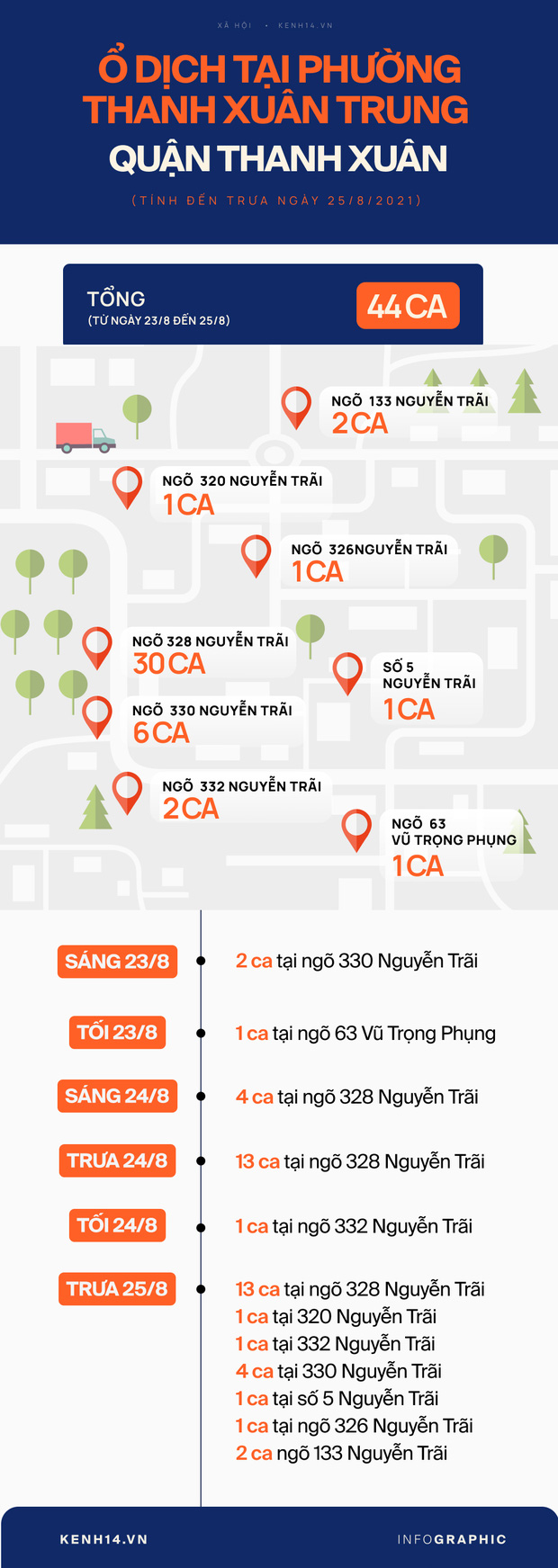Từ ngày 23/8 đến trưa 25/8, Hà Nội ghi nhận tổng 44 ca Covid-19 tại phường Thanh Xuân Trung, quận Thanh Xuân, được đánh giá là ổ dịch nóng nhất hiện nay.
