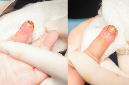 Bác sĩ đã phẫu thuật cấp cứu, xử lý vùng mềm dập nát, đặt lại móng, khâu tạo hình ngón, tránh cho trẻ nguy cơ phải cắt cụt đốt ngón tay.