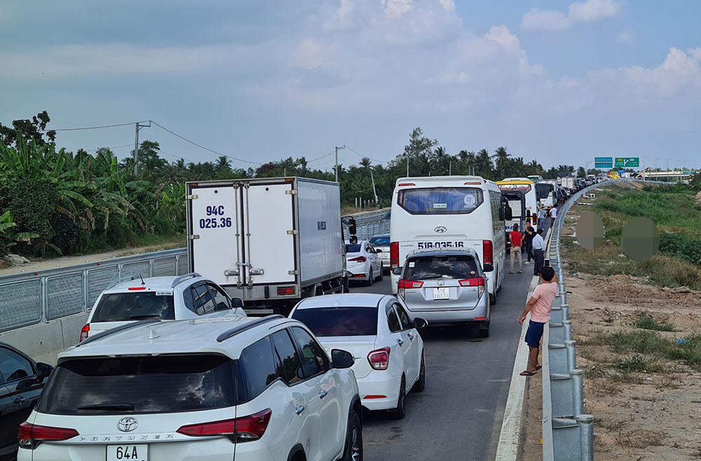 Đến khoảng 15h, tình trạng ùn ứ giao thông đã được giải tỏa, các phương tiện trên cao tốc Trung Lương – Mỹ Thuận lưu thông trở lại.