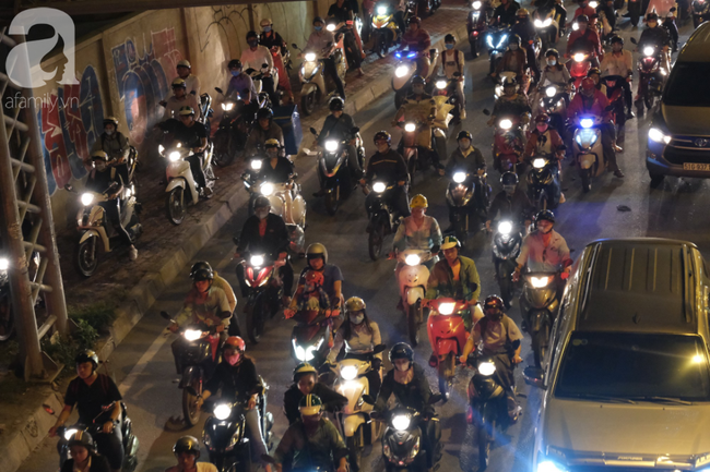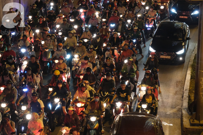 Ghi nhận ở khu vực này thời điểm hơn 18h ngày 8/10, hàng trăm phương tiện xe máy, xe bus đến xe ô tô, xe tải cùng chen chúc nhau gây nên cảnh hỗn loạn như ma trận.