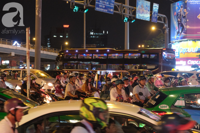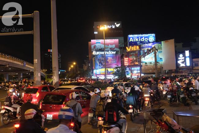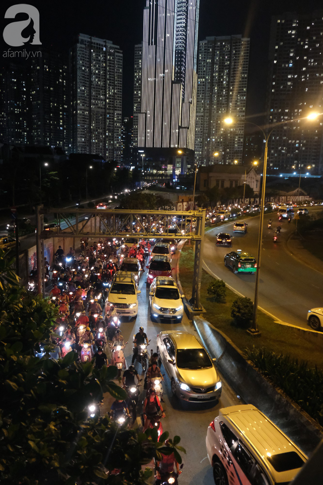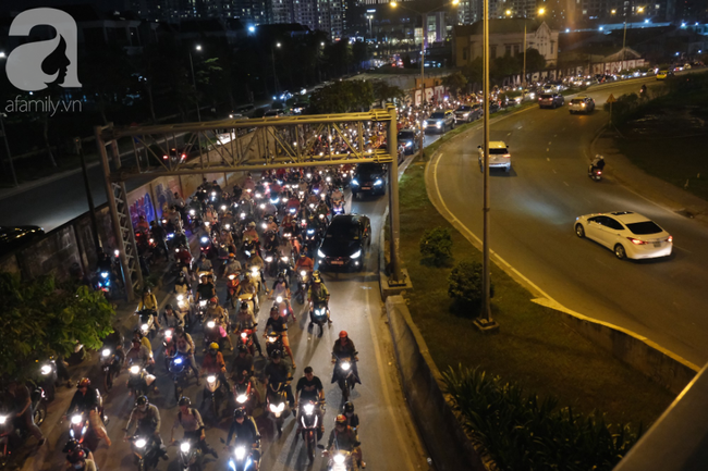 Cảnh kẹt xe cũng xuất hiện khi nhiều người chọn đi qua cầu Sài Gòn để vòng theo đường Trần Não (quận 2) chui dưới chân cầu Sài Gòn quay trở lại. Theo ghi nhận, hàng loạt phương tiện đi xe máy đã phải lao cả lên vỉa hè tìm cách thoát khỏi tình cảnh kẹt xe khủng khiếp.