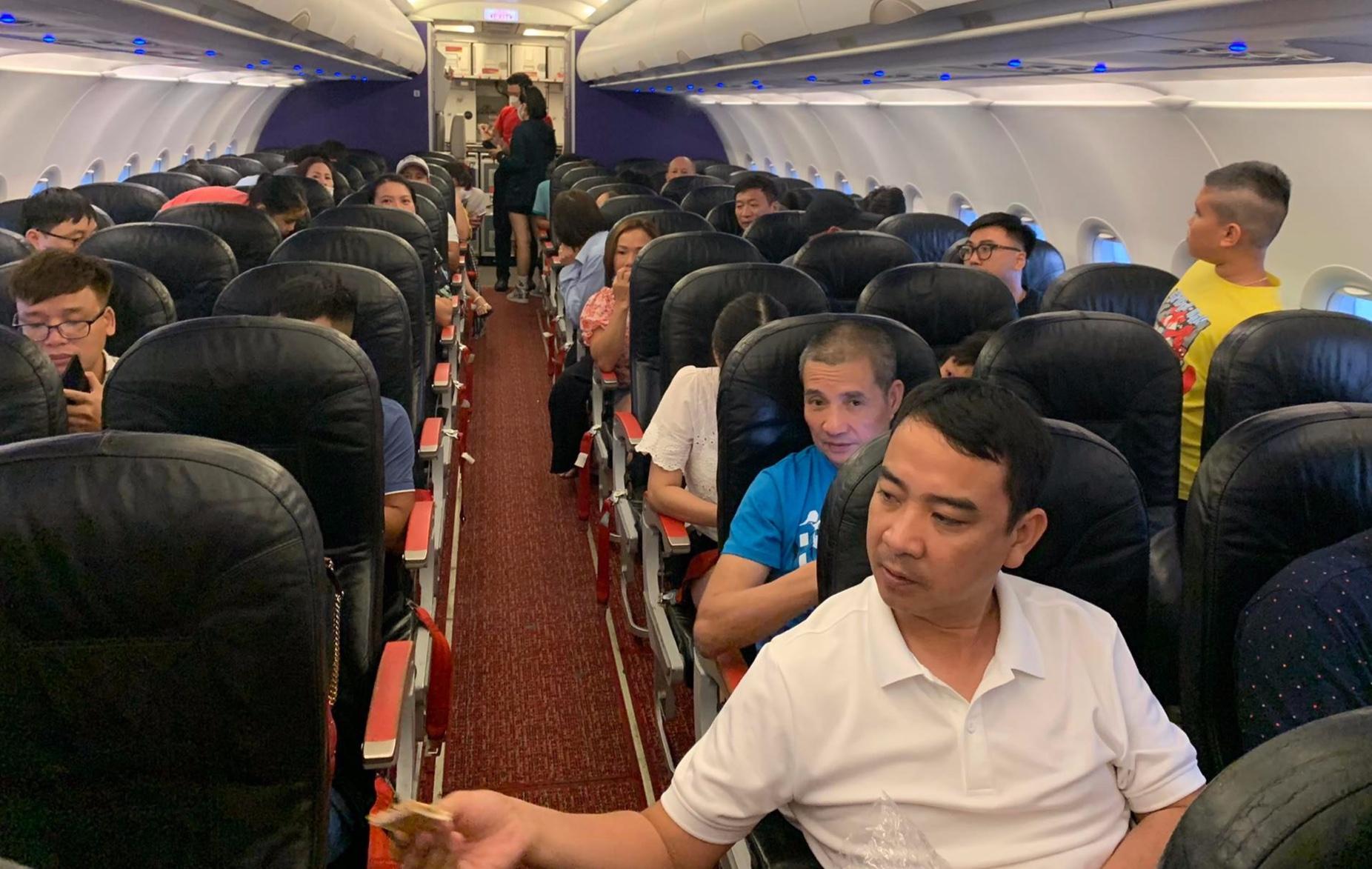 Chị Lê Thu Hường ở Hoàng Mai (Hà Nội) cho biết, theo lịch trình chuyến bay VJ502 chở gia đình chị từ Đà Nẵng sẽ hạ cánh xuống Nội Bài (Hà Nội) lúc 16h35. Khi gần đến Nội Bài, cơ trưởng thông báo chuyến bay chuẩn bị hạ cánh. Thế nhưng, sau đó máy bay bay lòng vòng trên trời khoảng 30 phút vẫn không hạ cánh được. Cuối cùng cơ trưởng phải thông báo do thời tiết xấu nên máy bay phải hạ cánh xuống sân bay Cát Bi lúc 18h10.