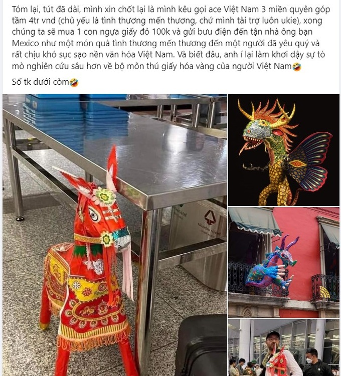 Biết câu chuyện và tình cảm của vị khách với Việt Nam, anh Sơn Đặng, một kiến trúc sư ở Hà Nội, nảy ý tưởng tìm mua con ngựa giấy khác để gửi tặng qua đường bưu điện.