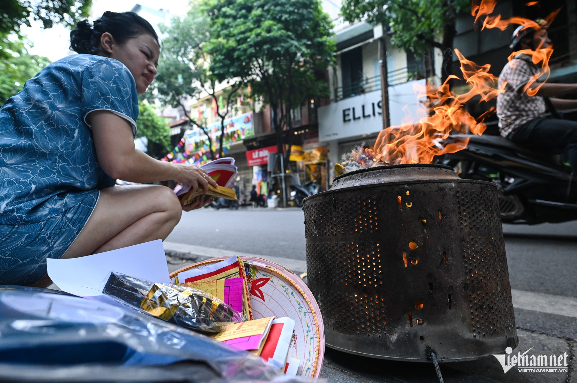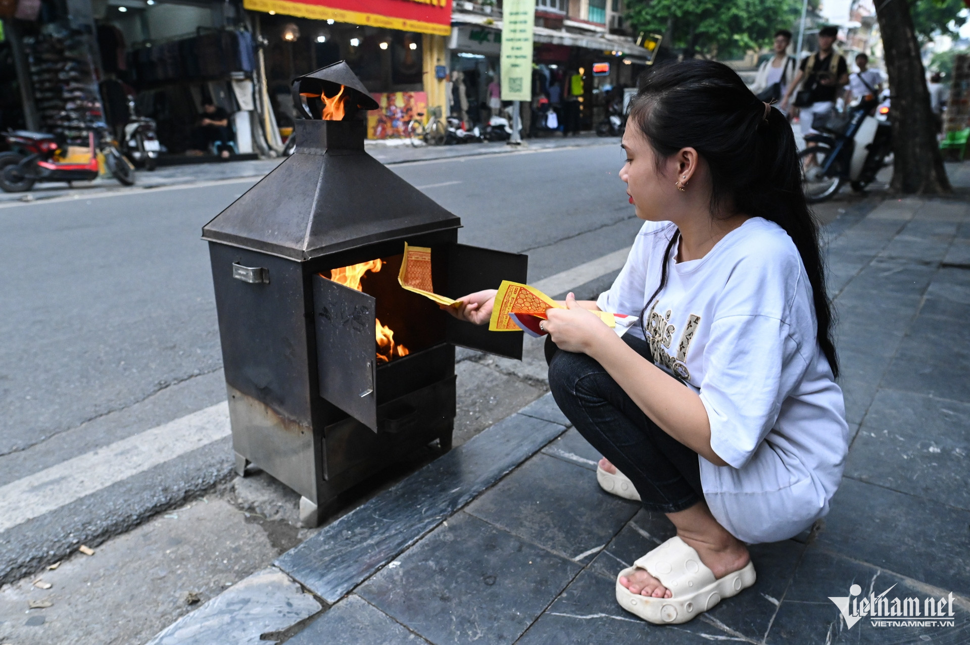 Anna (du khách) cho biết: "Tôi đi bộ từ chợ Đồng Xuân đến đây, chừng 1km thấy khoảng chục gia đình đang đốt tiền giấy. Tôi đoán đây là một ngày quan trọng trong văn hóa của người Việt, cảm thấy khá lạ mắt".