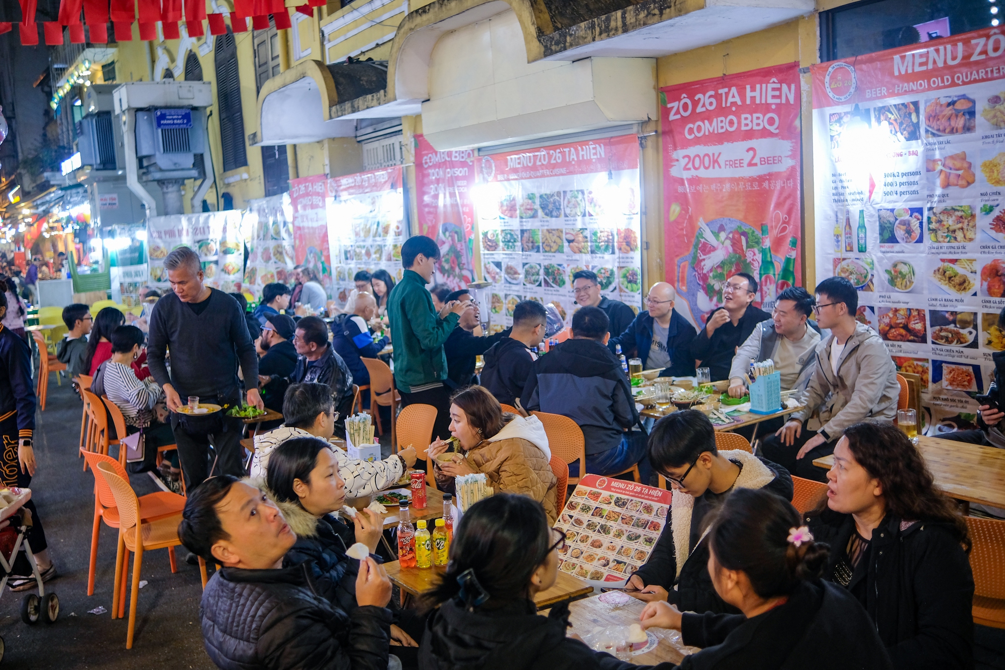 Cũng bởi lượng khách đổ về ngày một đông, các hàng quán trên phố Tạ Hiện và những con phố xung quanh phải hoạt động liên tục, hết công suất. Trong khi ngày cuối năm này là dịp để mọi người được nghỉ ngơi, vui chơi, xả hơi thì lại là dịp để các hàng quán "hốt bạc".