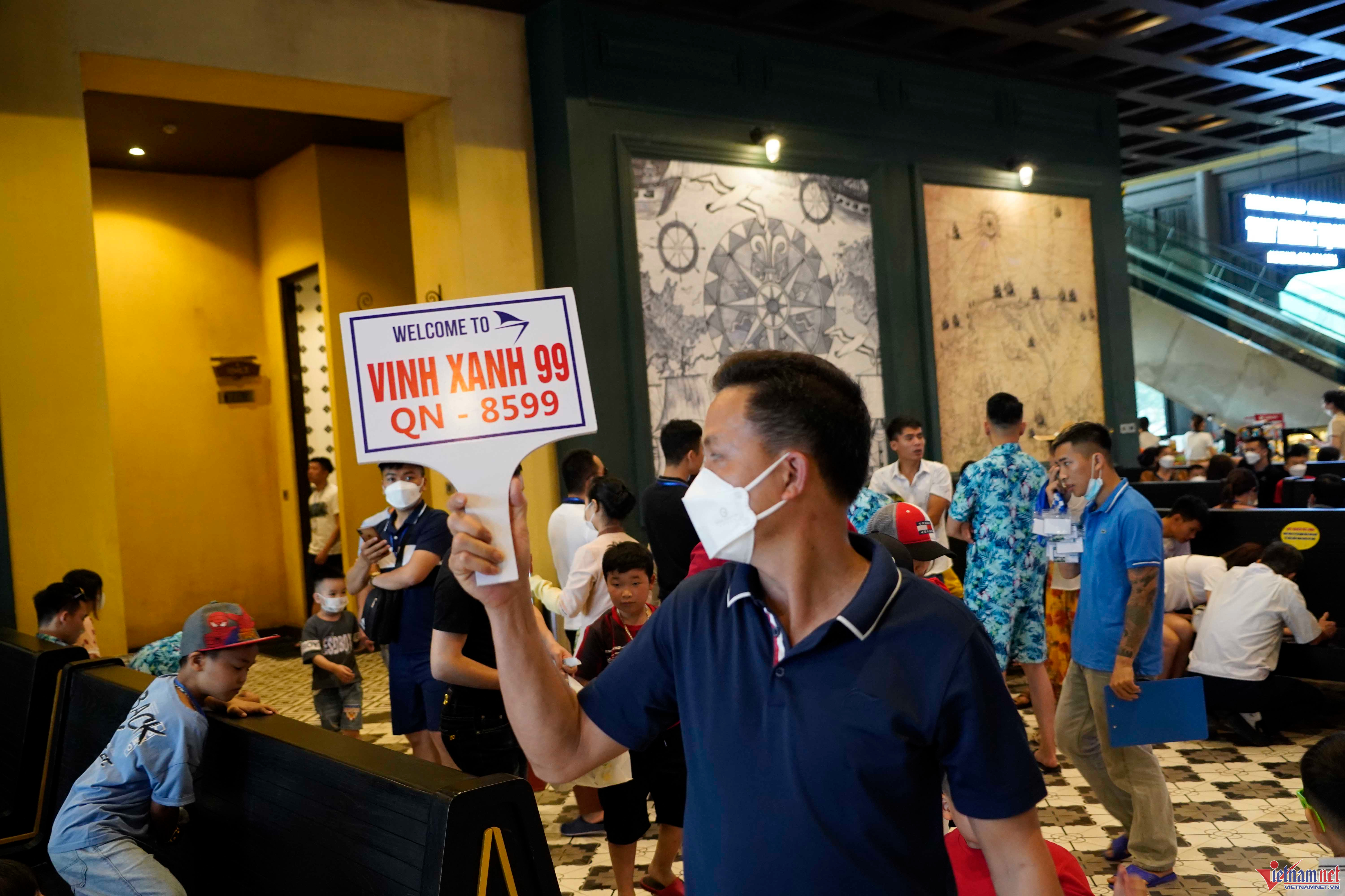 Tuyến 1 tham quan vịnh Hạ Long đã có hơn 10 tàu xuất bến lúc gần 7h sáng. Các chủ tàu trực tiếp mang bảng hiệu lên sảnh để đón khách.