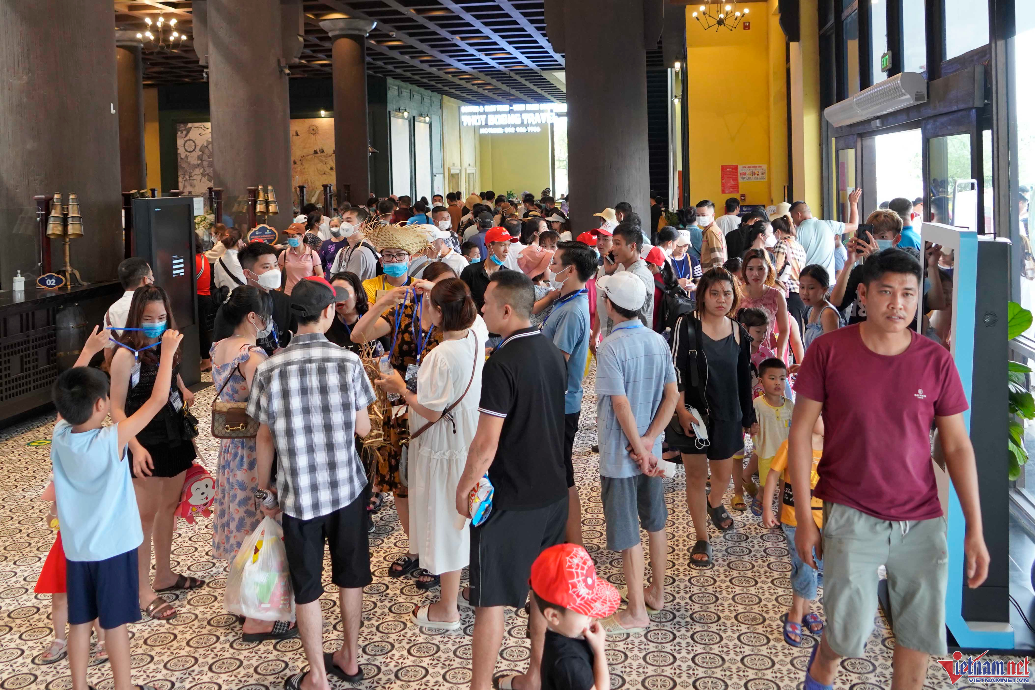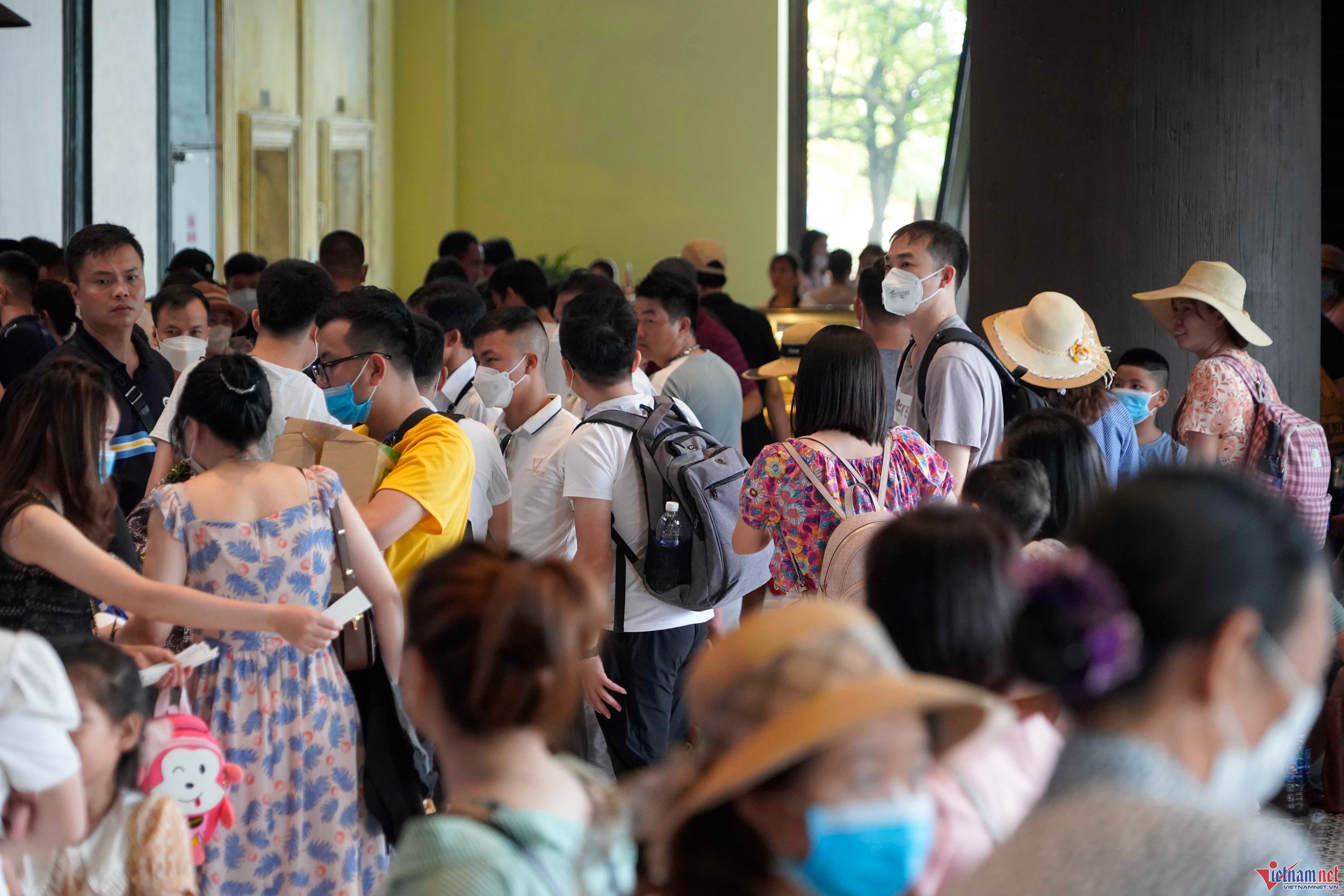 Do quá đông người tập trung cùng lúc, lực lượng an ninh tại đây phải phân luồng, yêu cầu mọi người đi theo đoàn để tránh hỗn loạn.