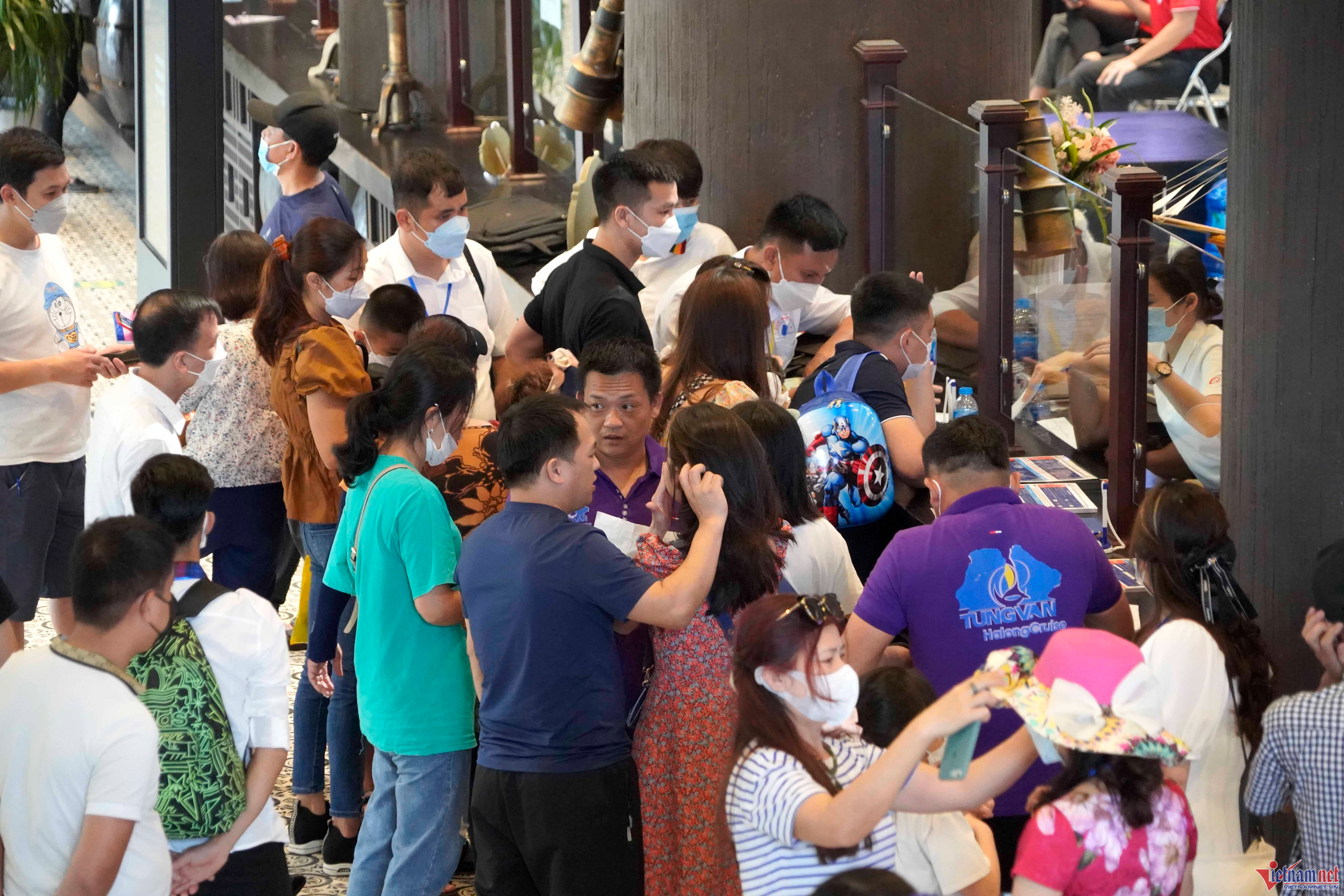 30/04/2022 18:07Khách vác đồ ăn, chen chân mua vé tham quan vịnh Hạ Long ngày đầu nghỉ lễ 30/4