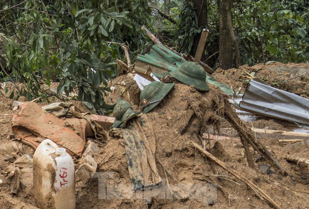 Ngay tại mép vực, nơi dòng bùn lầy lùa tất cả mọi thứ ra khỏi thung lũng còn lại một số đồ vật. Vài chiếc áo phao, 3 chiếc mũ cối, chiếc ghế sắt, vài mảnh vải. Đồ vật khiến mọi người đi qua đều phải chăm chú nhìn rất lâu, đó là những chiếc mũ cối vẫn còn sao.