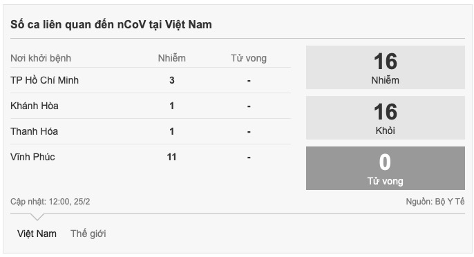 Ban chỉ đạo quốc gia về phòng, chống dịch corona của Việt Nam quyết định cách ly toàn bộ người nhập cảnh từ vùng có dịch - gồm 31 tỉnh của Trung Quốc và 2 địa phương của Hàn Quốc (thành phố Daegu và tỉnh Gyeongsangbuk) từ chiều 24/2.