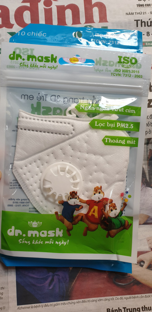 Khẩu trang dành cho trẻ em, có công dụng "thần thánh" vừa ngăn ngừa virus cúm, lọc bụi PM2.5 vừa thoáng mát là sản phẩm của công ty TNHH sản xuất thương mại và XNK Vina Towel Việt Nam, sản xuất tại ngõ 207 phố Bùi Xương Trạch, Hà Nội.