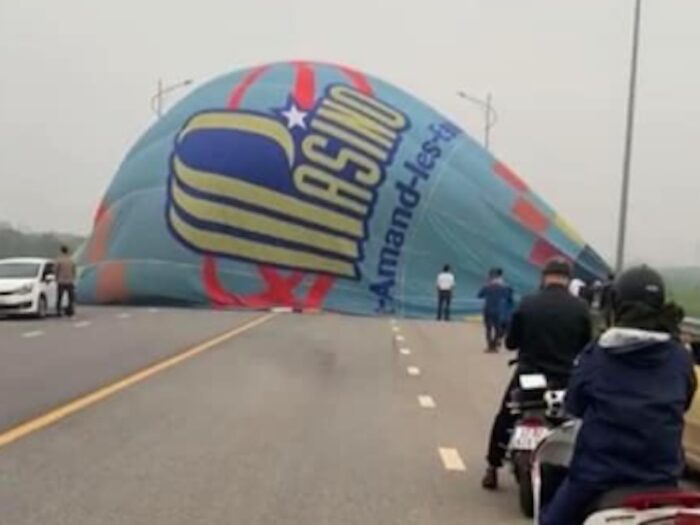 Sau khi buổi khai mạc diễn ra, mạng xã hội chia sẻ hình ảnh nhiều chiếc khinh khí cầu nằm trên đường bê tông, trên ruộng ngô, thậm chí có chiếc chắn ngang đường giao thông, bên cạnh là ô tô, xe máy của người dân đang di chuyển.