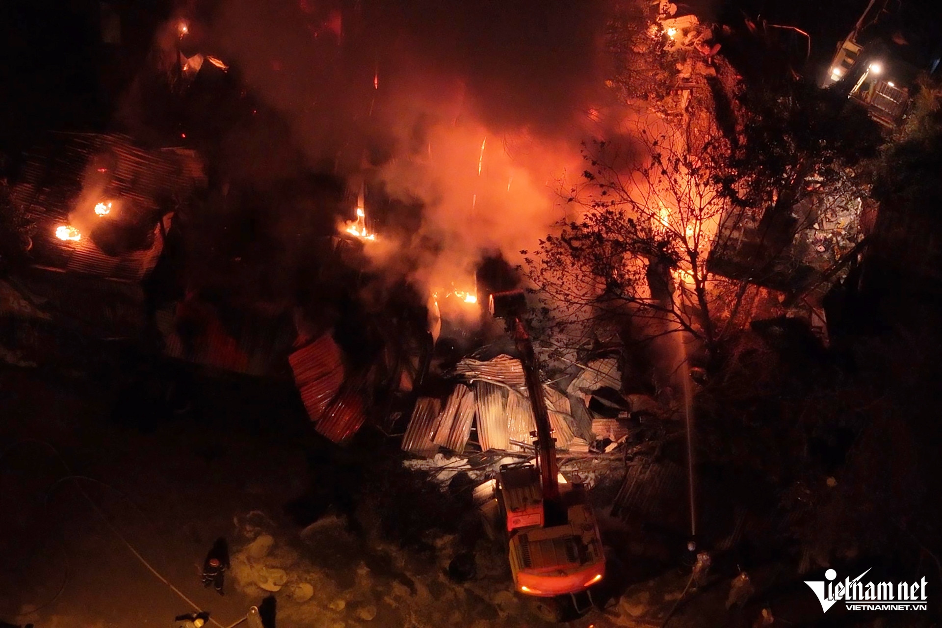 Anh Nguyễn Khắc Kiệm (Hoàng Mai) cho biết, anh ngủ ở lán kề bên. Khoảng 23h30, anh ngửi thấy mùi khét và lửa bùng lên nên vội chạy ra bên ngoài rồi tri hô những người khác bỏ chạy, đồng thời gọi điện thông báo cho lực lượng Cảnh sát PCCC&CNCH.