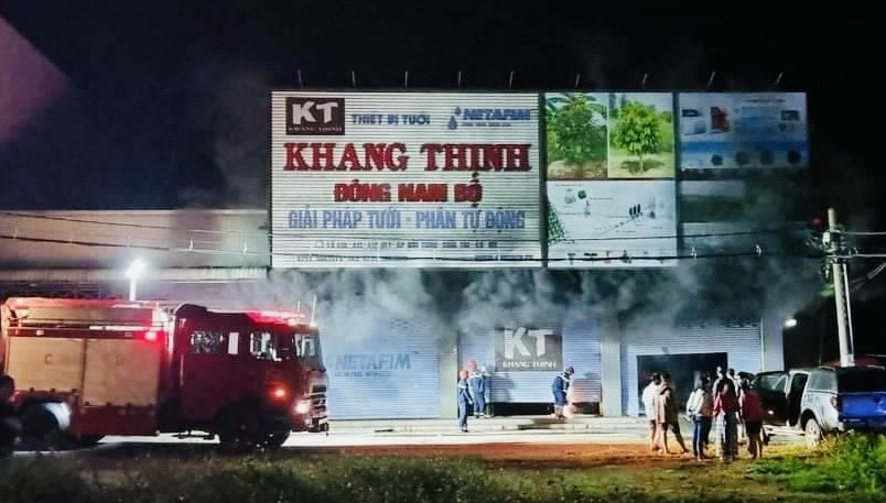 Thông tin ban đầu, khoảng 3h sáng nay (5/2), người dân phát hiện lửa bốc lên từ kho hàng thiết bị điện của Công ty CP Công nghệ thiết bị tưới Khang Thịnh (gần ngã 3 Cua Heo, TP Long Khánh, Đồng Nai).
