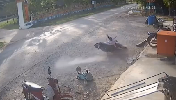 | Bé gái chạm phải tay ga xe máy, ngã đập đầu xuống đất đầy đau đớn |