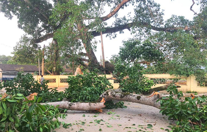 Cây đa bị gãy có tuổi đời lên đến 305 tuổi, được công nhận là cây di tích lịch sử văn hóa. 2 cành cây lớn gãy đã đè trúng 4 cháu học sinh đi học về.