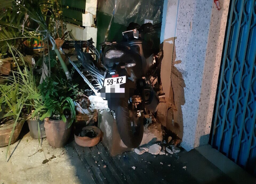 Thượng úy T. (sinh năm 1992), cán bộ Đội Cảnh sát điều tra tội phạm về ma túy Công an quận 6 đã dùng xe máy cá nhân để truy đuổi đối tượng. Đến đường Lò Gốm, xe của chiến sĩ này đã mất lái, lao lên vỉa hè tông vào tường nhà dân.