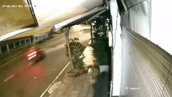 Camera an ninh ghi lại khoảnh khắc hai xe bám đuổi nhau rất sát. Có thể thấy, chiến sĩ công an và đối tượng bị truy đuổi chạy xe với tốc độ khá nhanh. Đến gần khúc cua, đột nhiên hai xe tách ra một khoảng khá xa. Chiến sĩ công an bị mất lái, lao thẳng vào nhà dân. Xe của đối tượng tiếp tục lao đi.